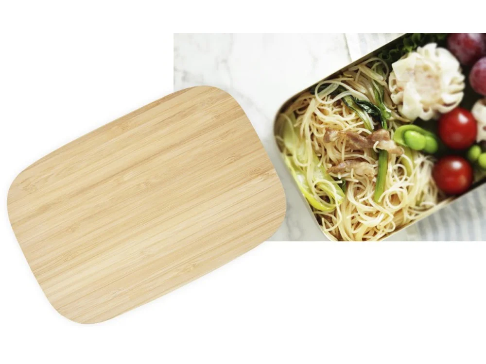 Tite Контейнер для обеда из нержавеющей стали с бамбуковой крышкой, серебристый