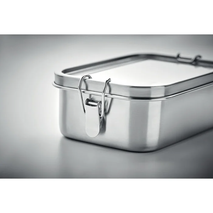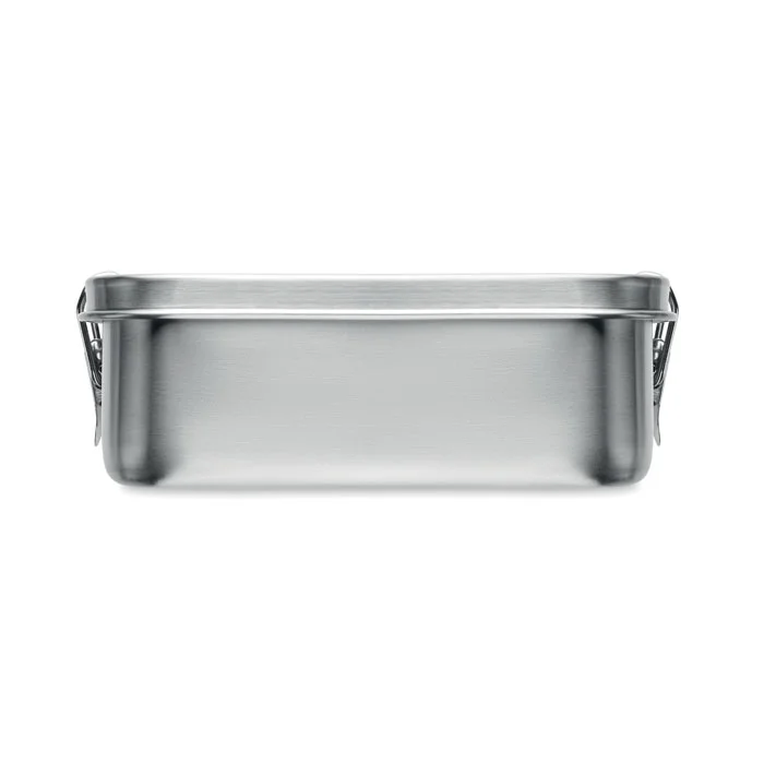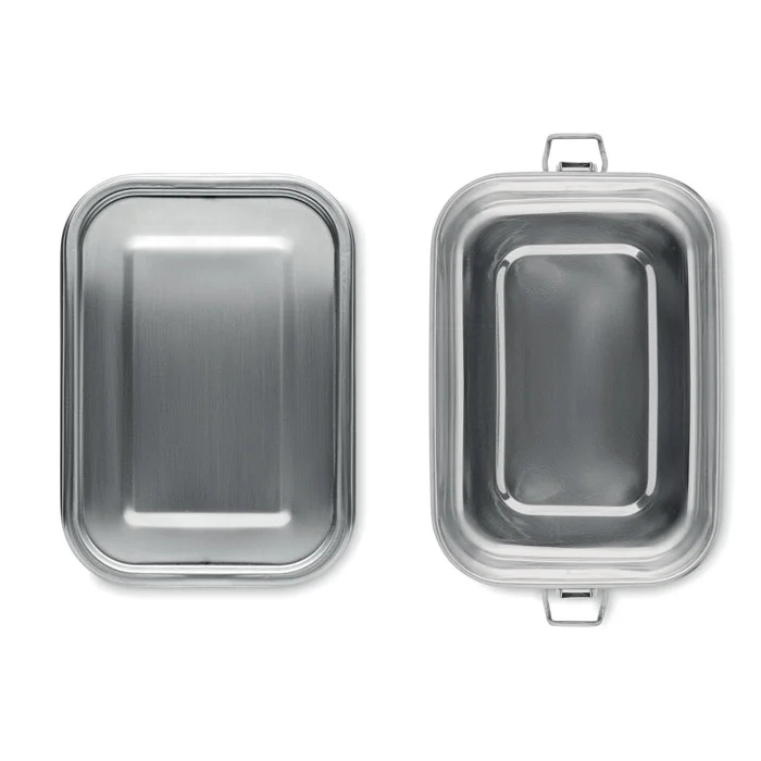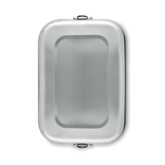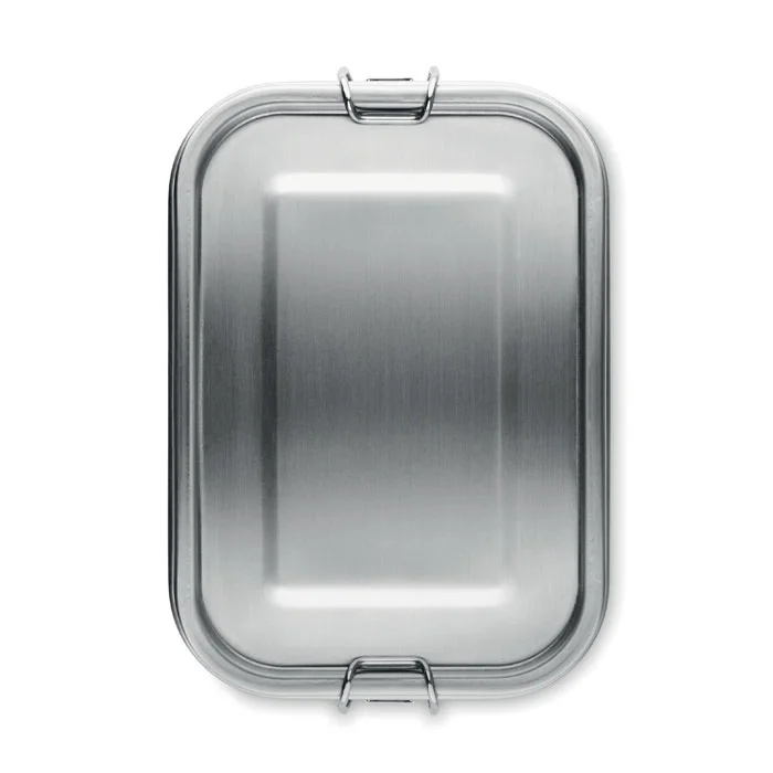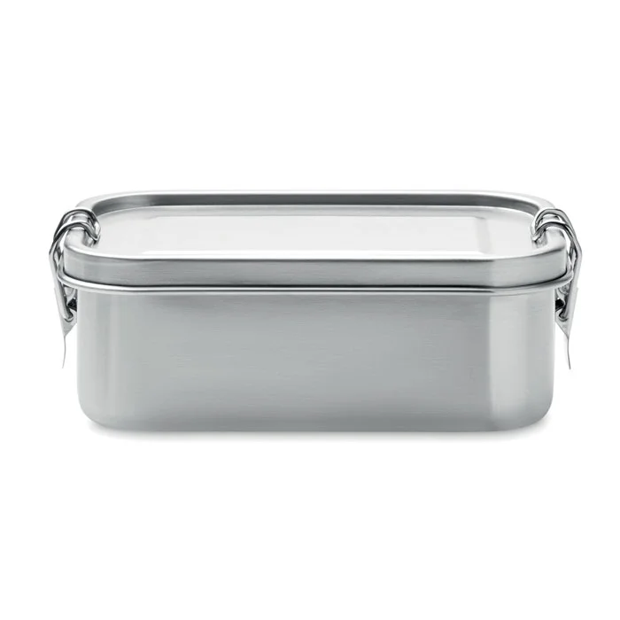 Ланчбокс из переработанной нержавеющей стали 90% и 10% нержавеющей стали с надежными боковыми застежками и скругленными углами. Объем: 750 мл.