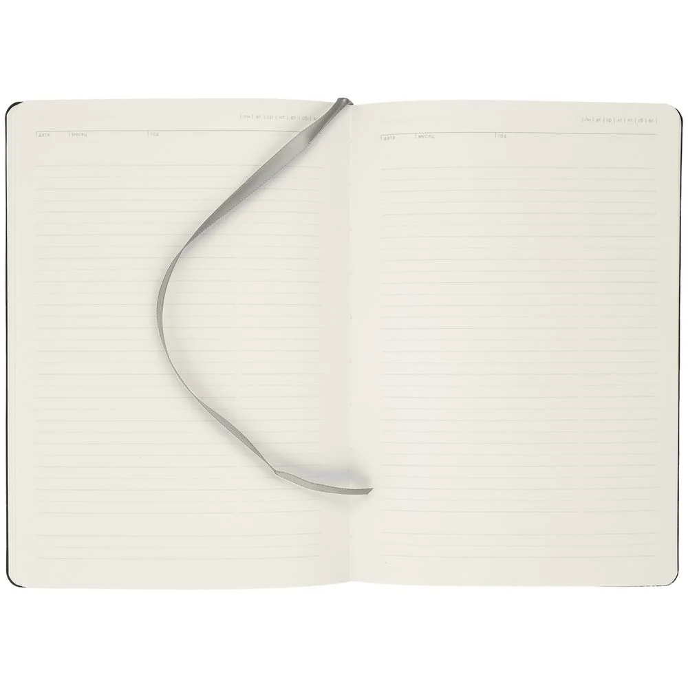 Ежедневник с гибкой обложкой, выполнен из материала Latte, серый, дополнен ляссе в цвет обложки.