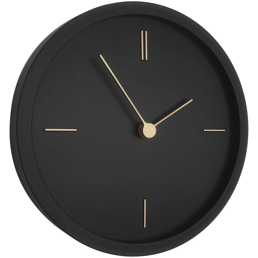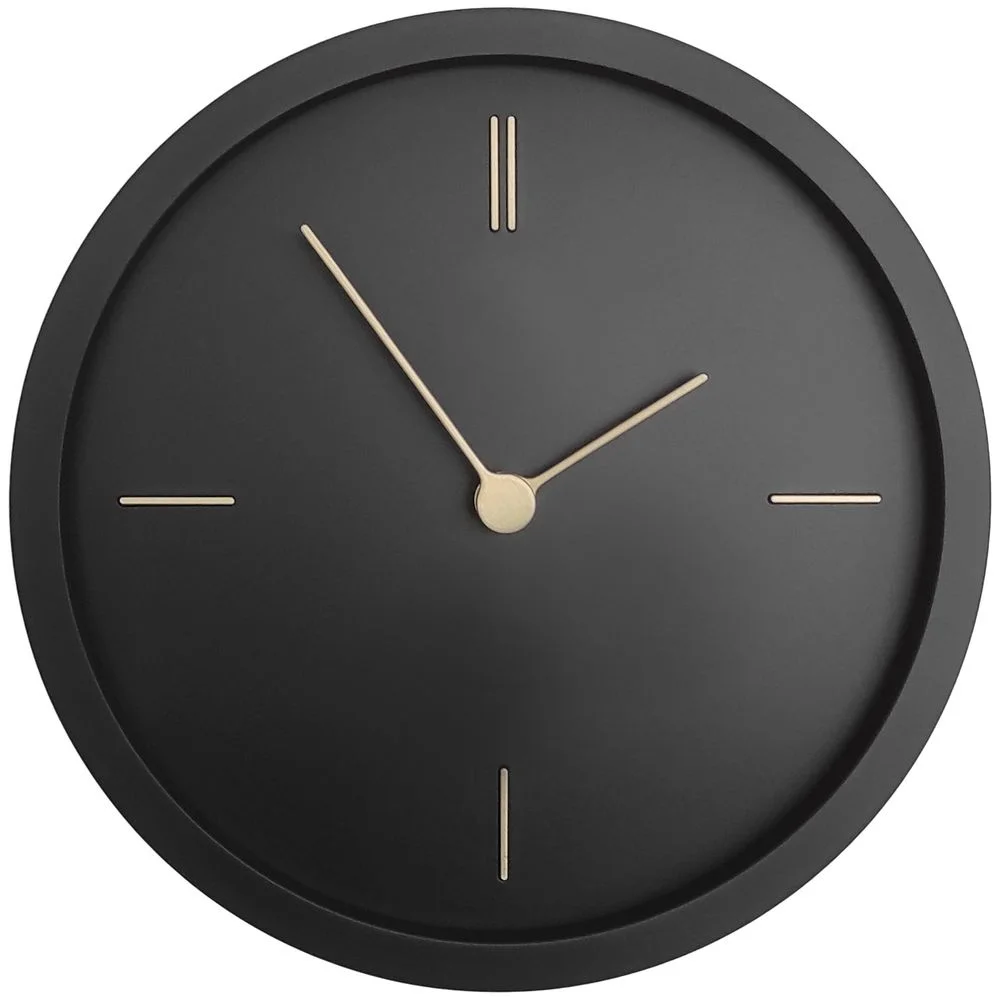 Представлены в круглом черном корпусе, на котором изящным контрастом выделяются тонкие линии часовых меток и стрелок золотистого цвета.