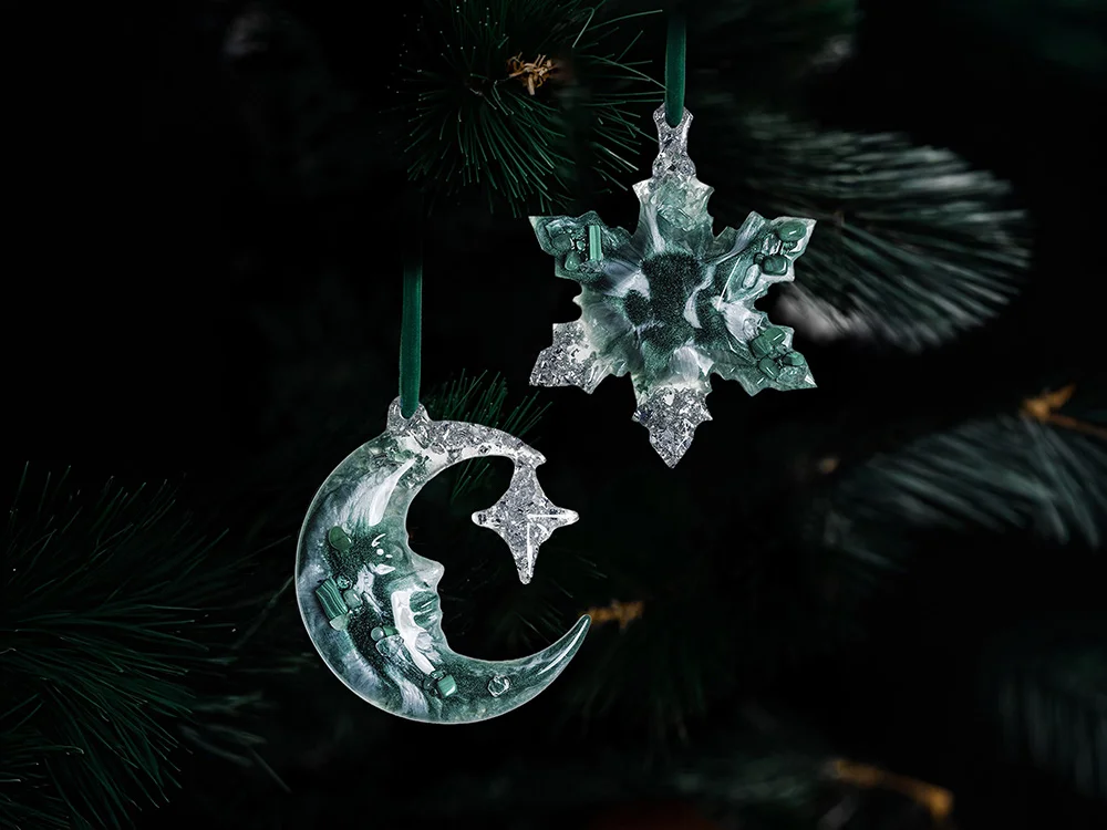 - Набор елочных игрушек: Полумесяц, Снежинка