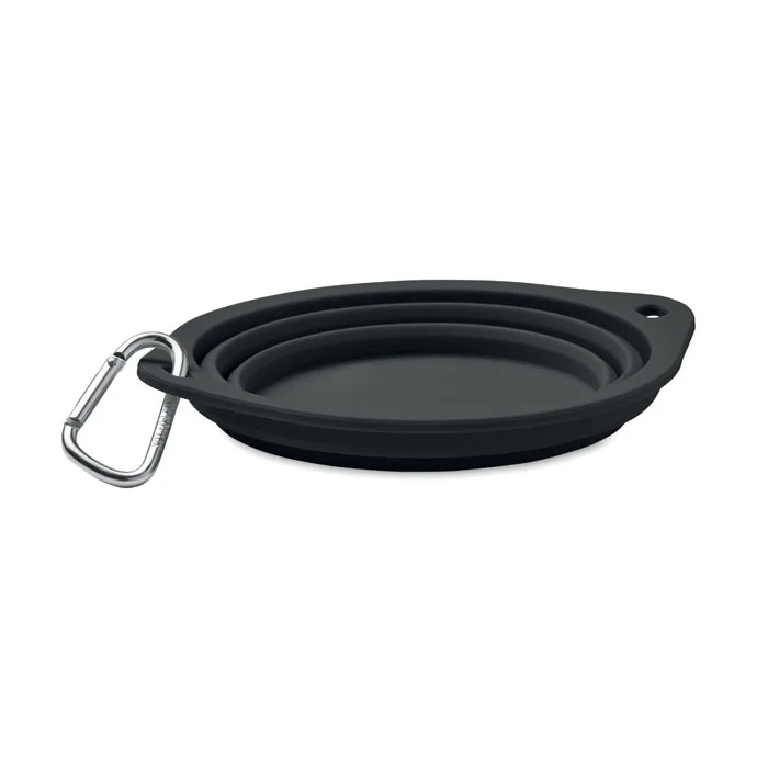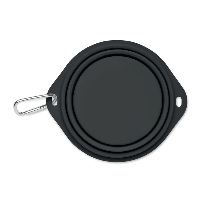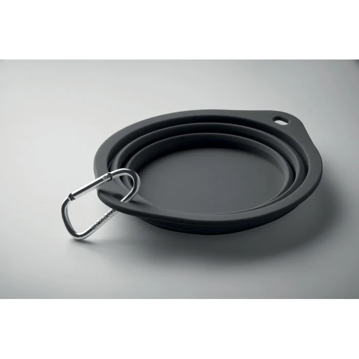 Collapsible portable silicone single drinking or food pet bowl with carabiner. Capacity: 350ml.