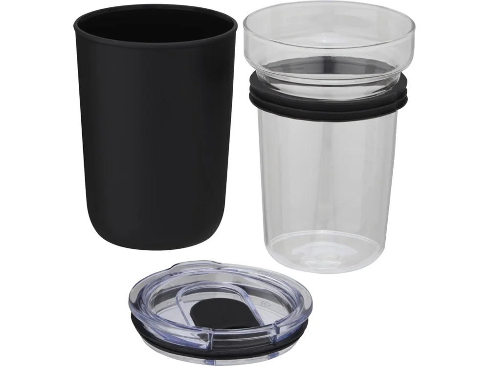 Bello, стеклянная кружка объемом 420 мл с внешней стенкой из переработанного пластика, черный