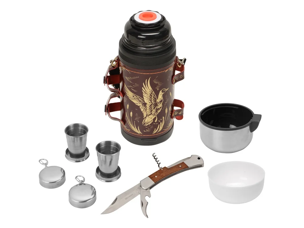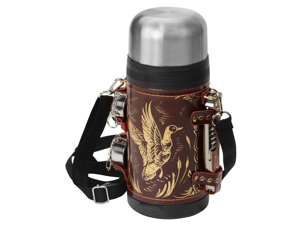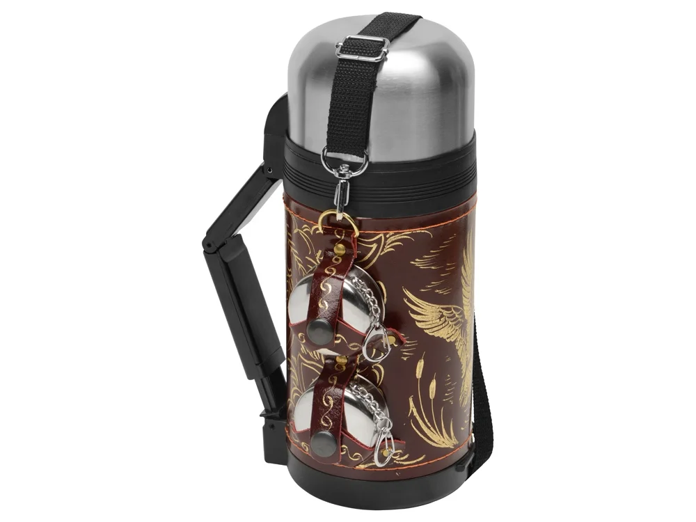 - Термос в кожаном чехле