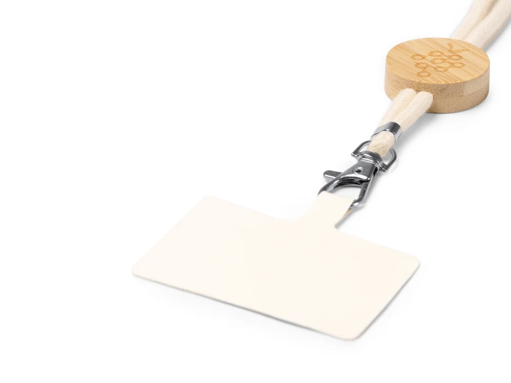 Шнурок-держатель для мобильного телефона из хлопка с бамбуковыми вставками и системой регулировки.