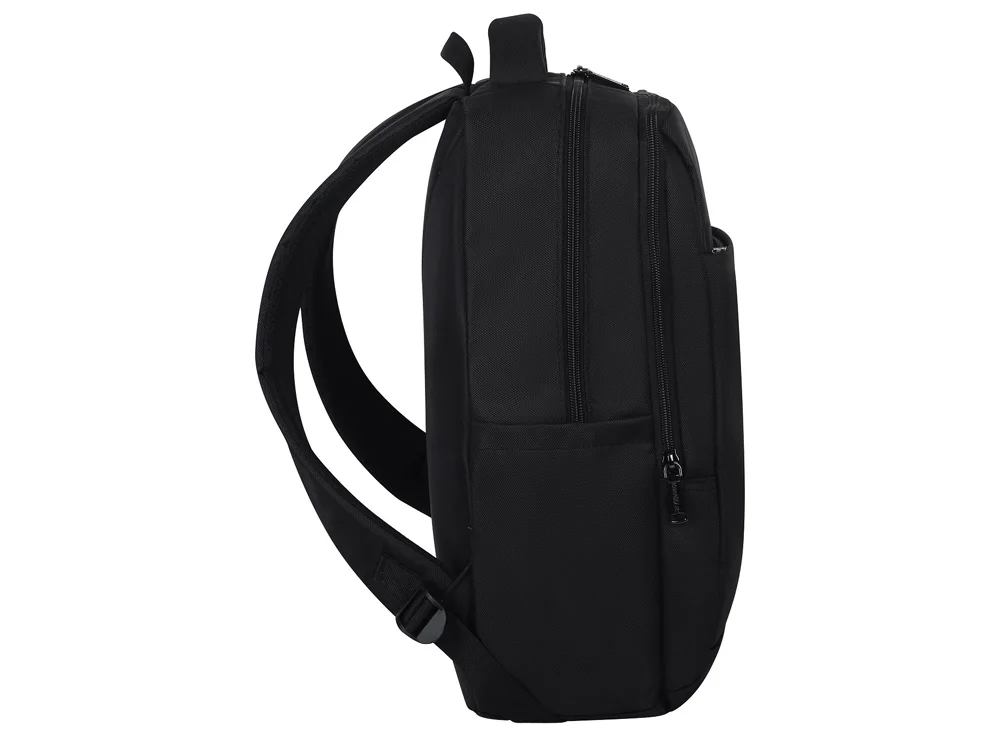 Бизнес-рюкзак с усиленным карманом для ноутбука 14''. Большой карман снаружи и 2 боковых кармана. 2 вместительных отделения. Лямки регулируются по длине.