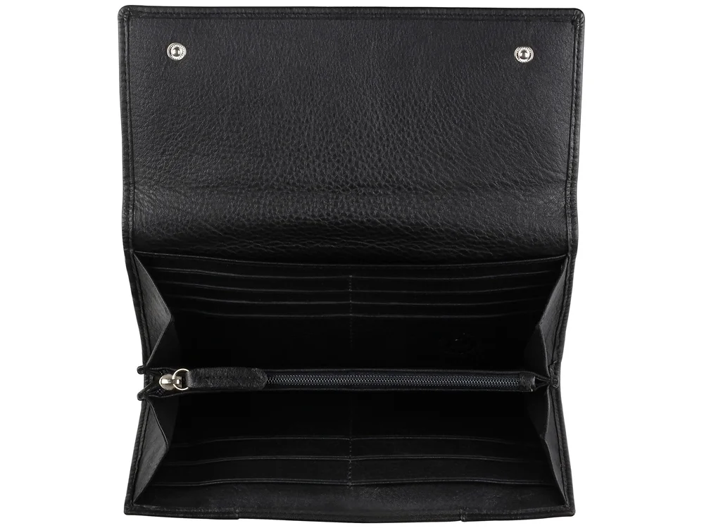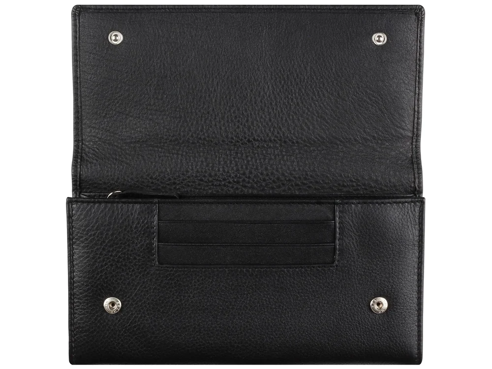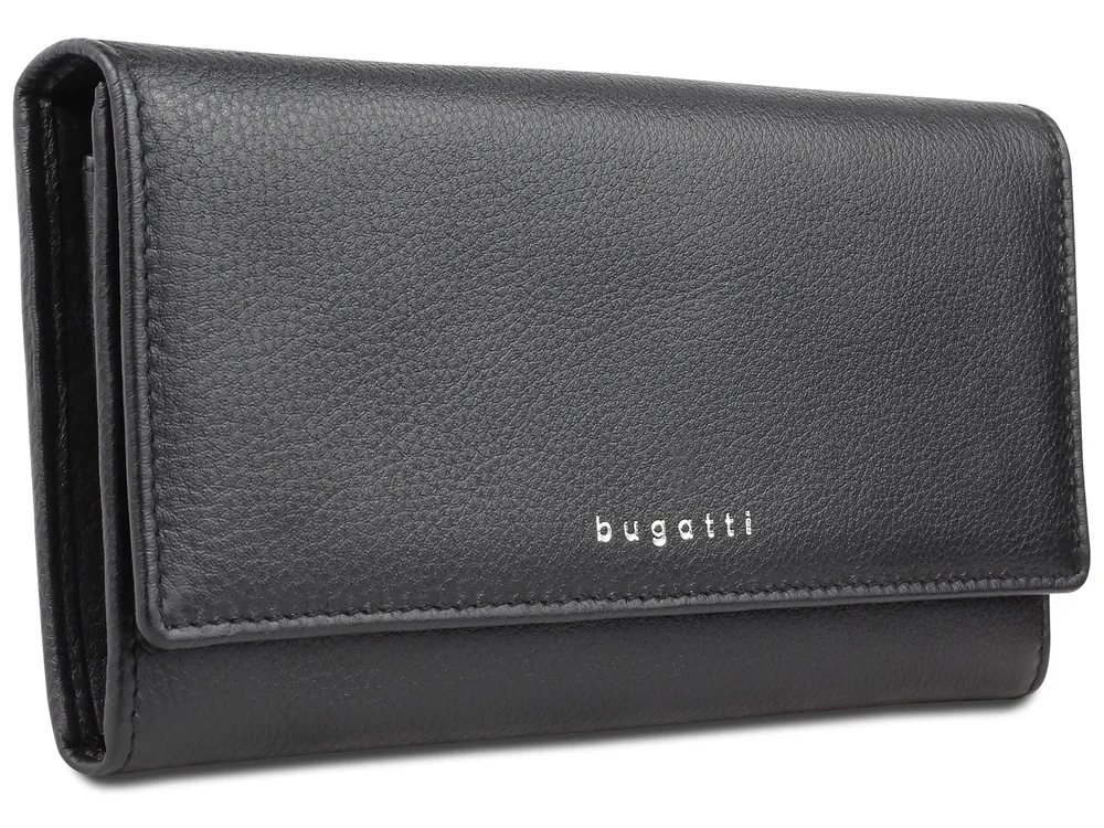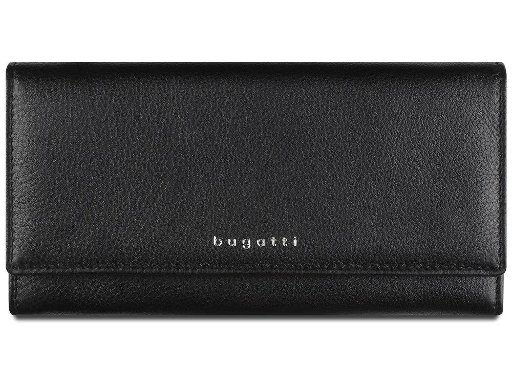 Кошелёк женский BUGATTI Lady Top, чёрный, натуральная воловья кожа, 20х2,5х10,5 см