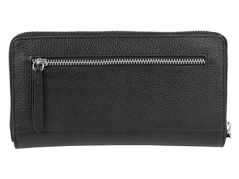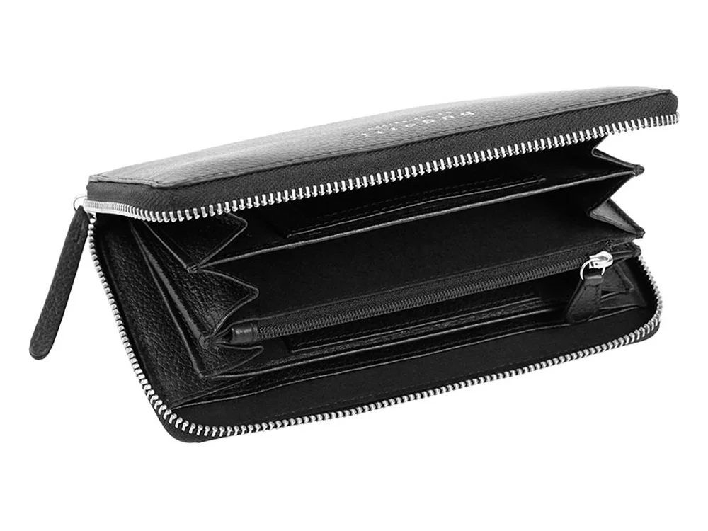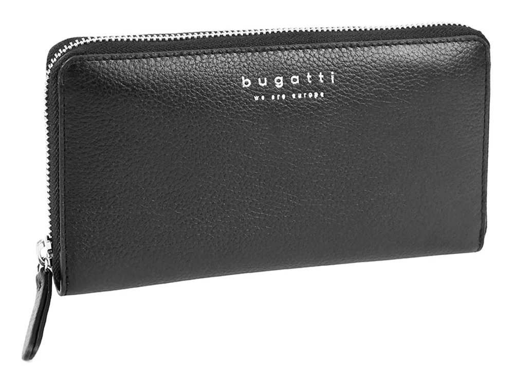Кошелёк женский BUGATTI Linda, на молнии, чёрный, натуральная воловья кожа, 19,2х2,5х10,5 см