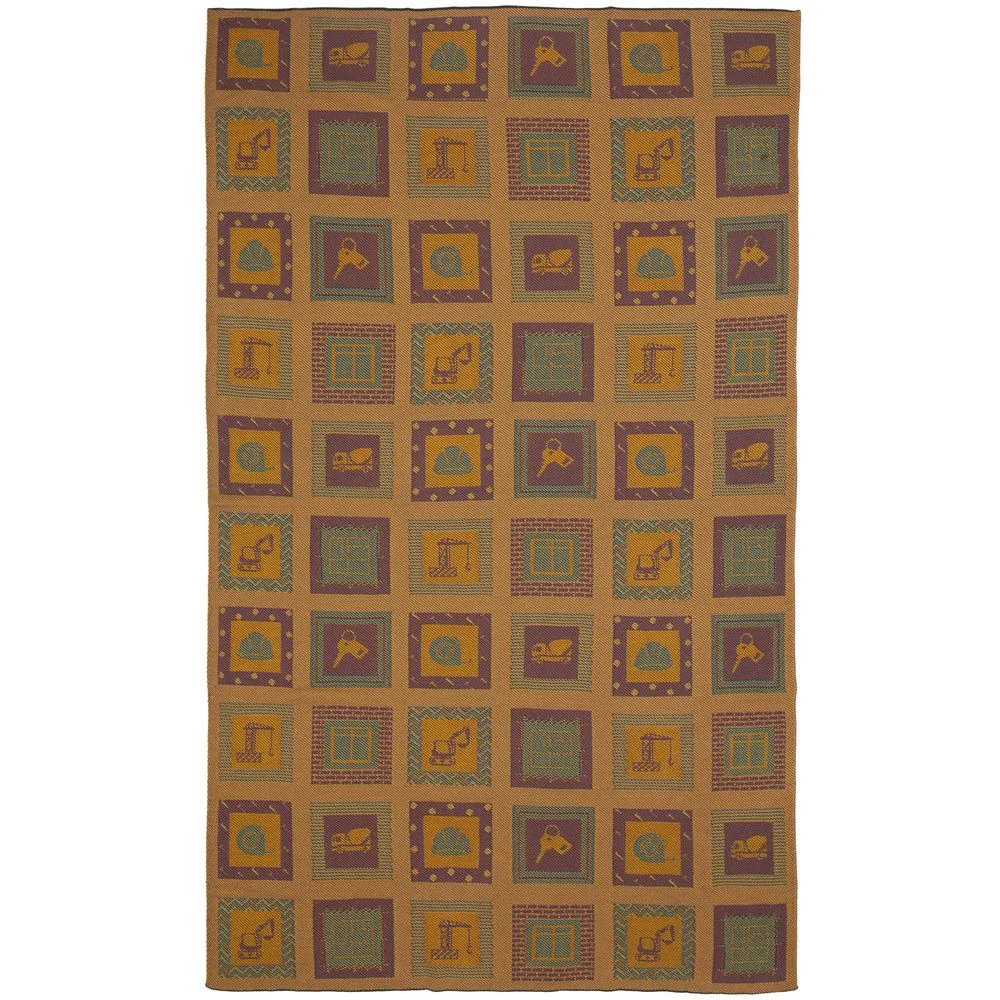 В каждой части общего рисунка, напоминающего лоскутное шитье, изображены главные символы строительной отрасли.